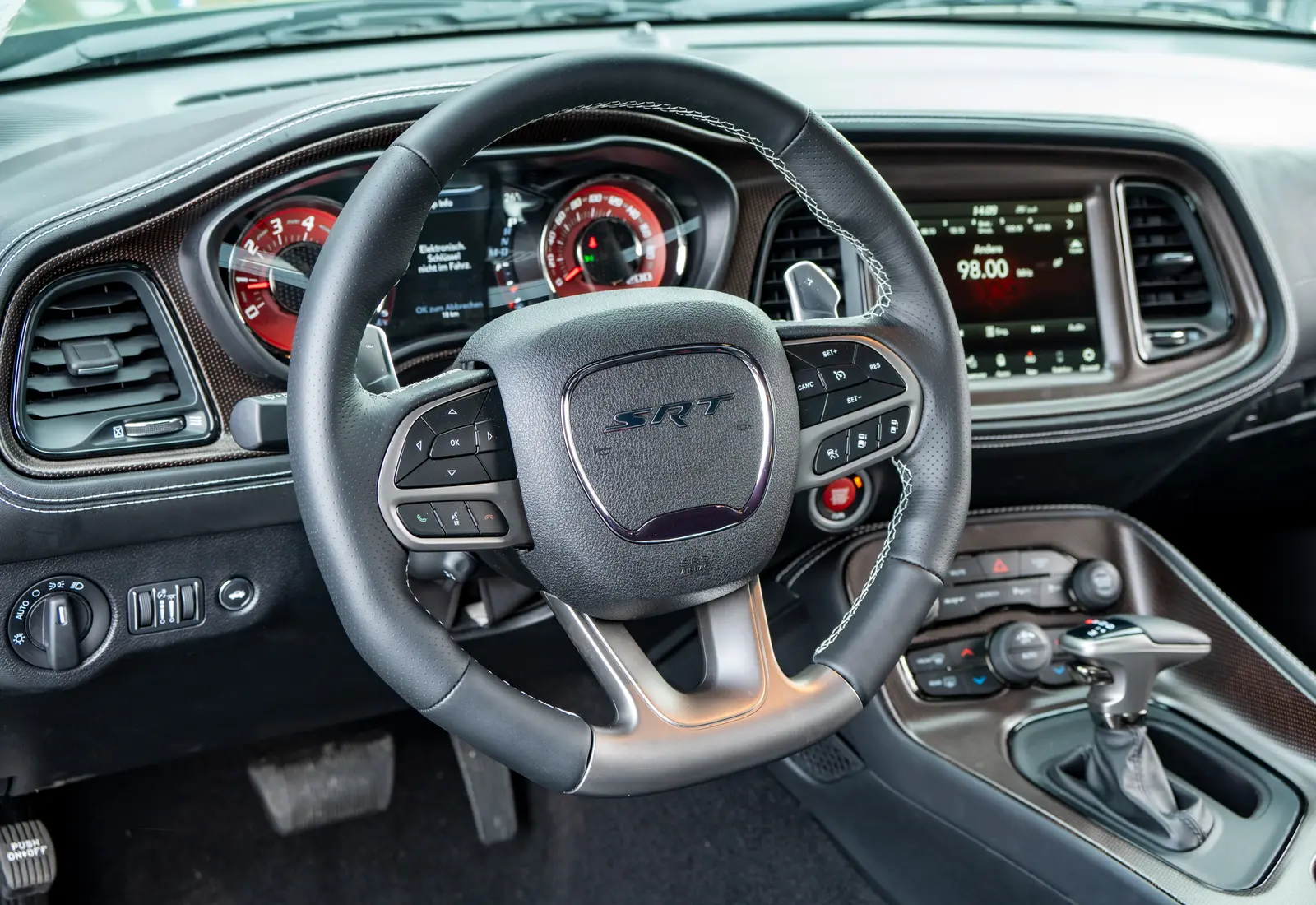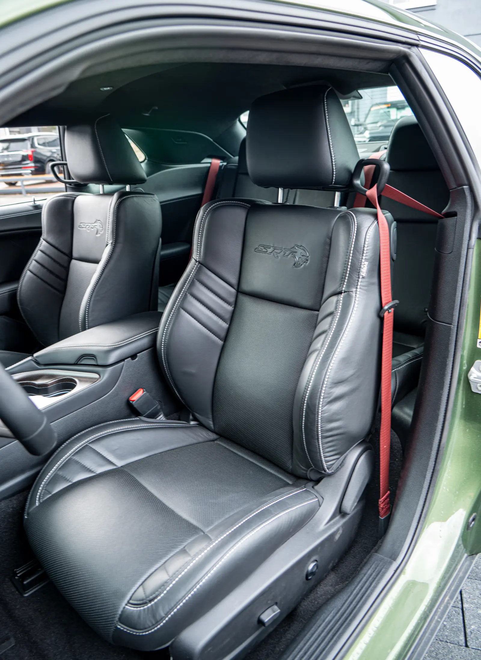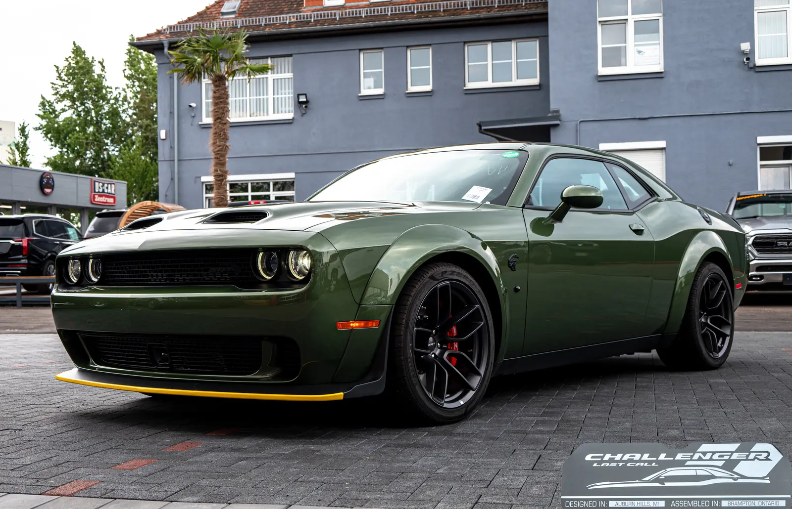 Der neue Dodge Challenger 6,2l Hellcat Widebody Jailbreak in F8 Green mit Lederausstattung sowie Abstandstempomat und Totwinkelassistent.